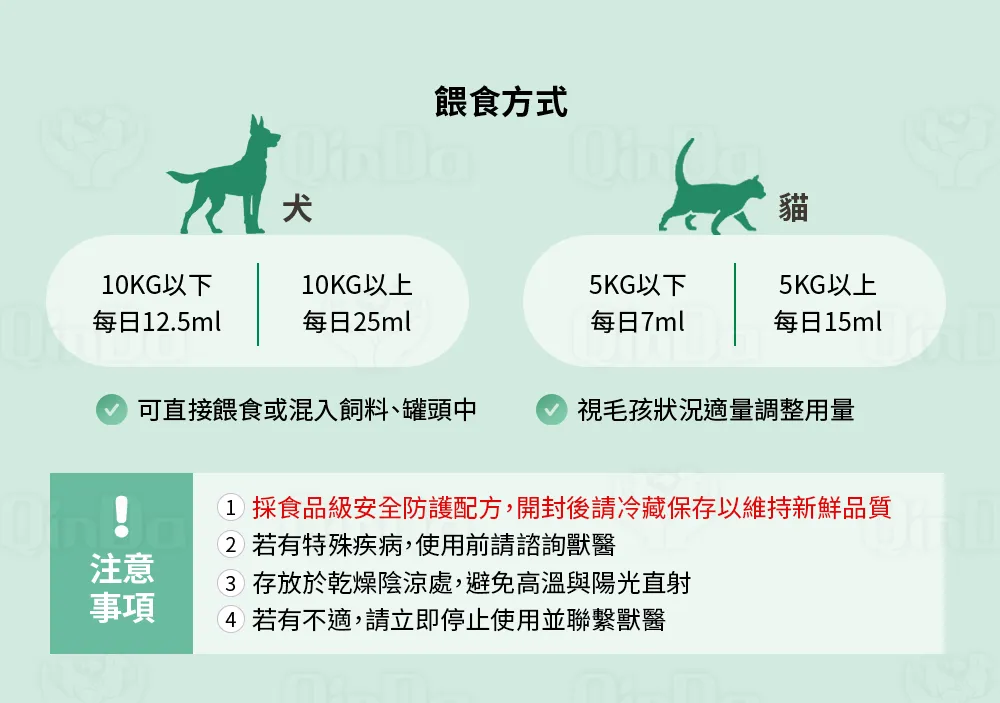 配方採用食品級原料與安全比例,長期食用無負擔。 但若毛孩有特殊疾病或過敏體質,仍建議諮詢獸醫師後再使用。