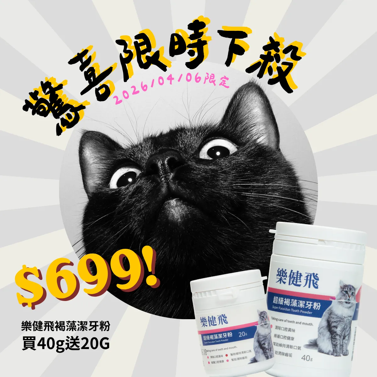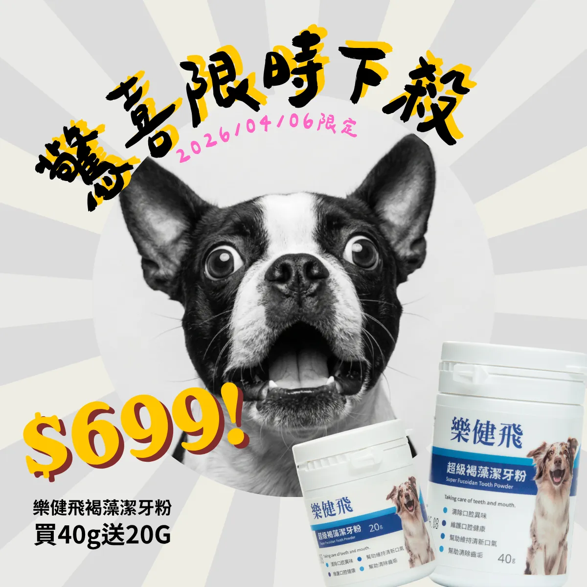 4/6 限定 樂健飛褐藻潔牙粉40g 享 $699 超低特價 再加碼『免費』送 20g