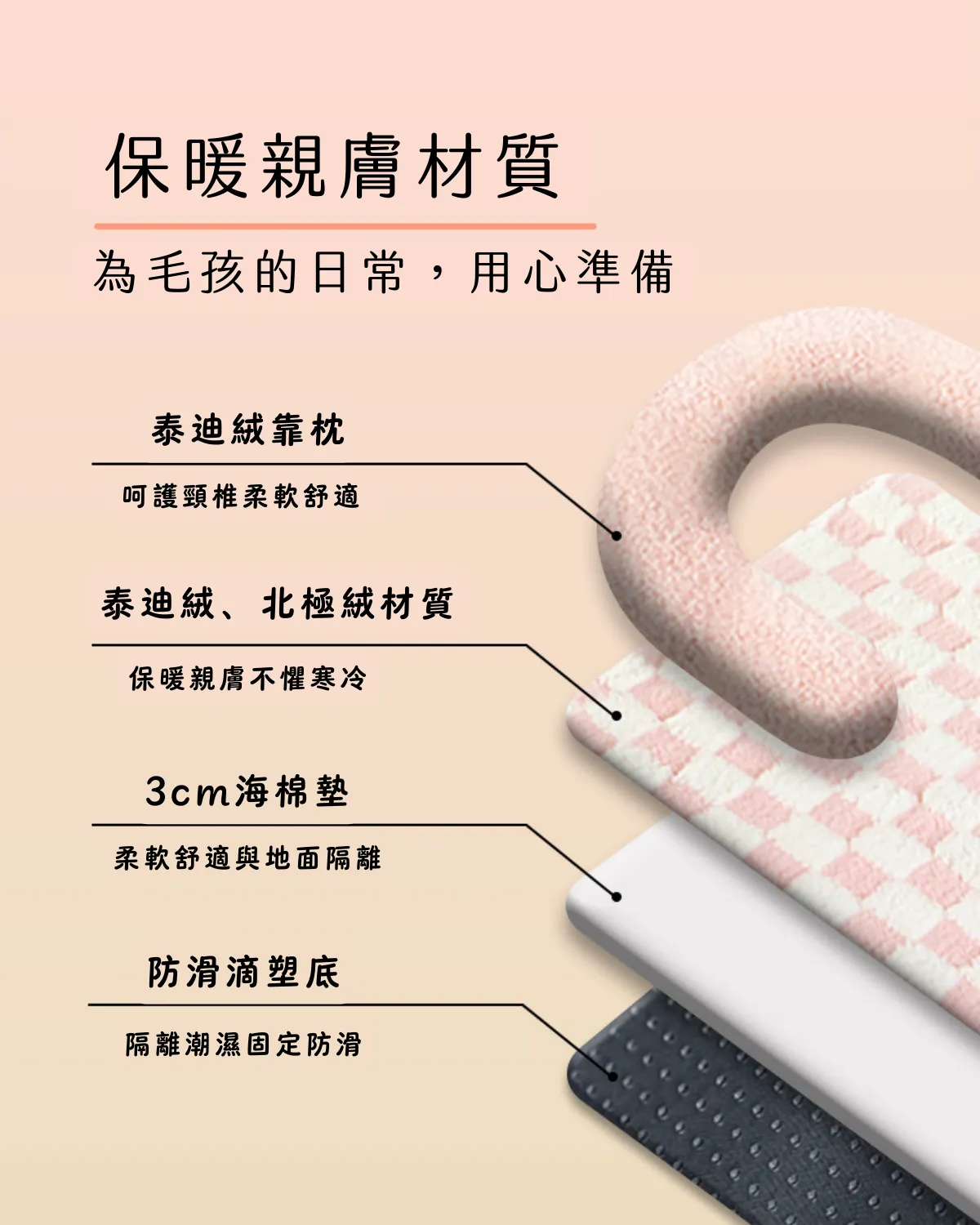 🐾 柔軟包覆,想靠就靠 邊緣微微加厚設計,貼合狗狗貓貓喜歡「靠著、趴著」的休息姿勢,讓毛孩自然放鬆、不拘束。
